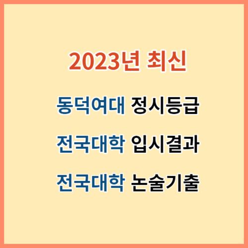동덕여대는 100여 년이 넘는 유구한 역사와 함께 서울 지하철 3호선으로 통학이 가능해 수도권 및 지방 수험생 모두에게 관심이 놓은 대학으로 지금 이 시간에도 수많은 학생들이 합격을 위해 젖 먹던 힘까지 최선을 다해 수능 인강은 물론이고 EBS 봉투 모의고사까지 독파하며 열심히 공부하고 계십니다. 이렇게 열심히 하는 수험생 여러분의 시간을 절약해 드리고자 2023년 최신 ①동덕여대 정시등급, ②전국 50위권 대학교별 입시결과, ③2024학년도 논술고사 시행대학 기출문제를 무료로 공유해 드리고자 합니다.